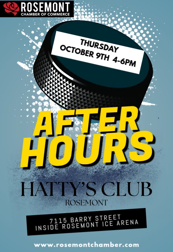 Join us for an evening of networking, complimentary drinks and light food at Rosemont's newest venue, Hatty's Club located in the new Rosemont Ice Arena! This is a members only event. If you are interested in joining the chamber, contact us at info@rosemontchamber.com.