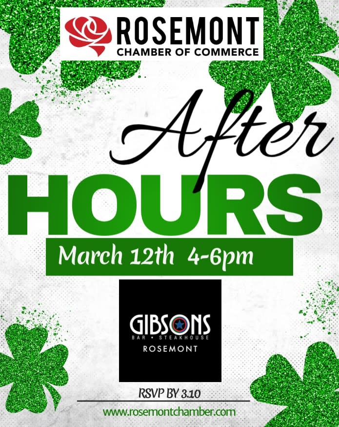 Join us for an evening of networking! Complimentary drinks and light food will be provided. This is a members only event. If you are interested in joining our chamber, please email info@rosemontchamber.com.